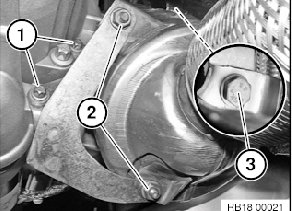 - 4 Wandlerschrauben (1) mit Spezialwerkzeug 24 1 110 lösen.