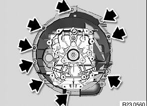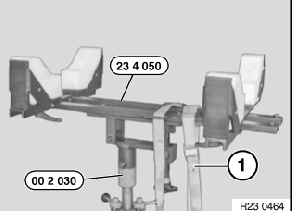 - Getriebe mit Spezialwerkzeug 23 4 050, 00 2 030 abstützen.