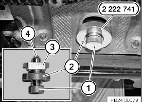 - Spezialwerkzeug 24 1 370 mit dem Formstück (3) in die Aussparung einsetzen.